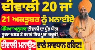 Read More »ਦੀਵਾਲੀ 20 ਜਾਂ 21 ਅਕਤੂਬਰ ਨੂੰ ਮਨਾਈਏ