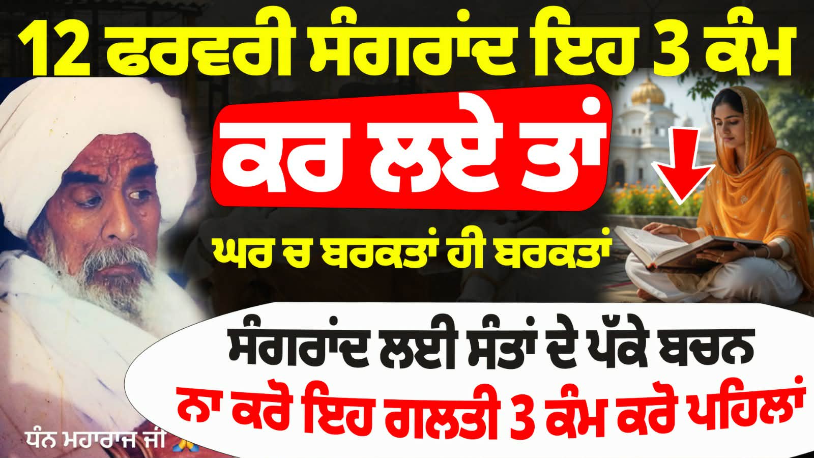 Read More »12 ਫਰਵਰੀ ਸੰਗਰਾਂਦ ਇਹ 3 ਕੰਮ ਕਰ ਲਏ