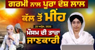 ਪੰਜਾਬ ਸਣੇ ਉੱਤਰੀ ਭਾਰਤ ਦੇ ਕਈ ਸੂਬਿਆਂ ਵਿਚ ਮੌਸਮ ਮੁੜ ਬਦਲਣ ਵਾਲਾ ਹੈ। ਤੇਜ਼ ਹਵਾਵਾਂ ਨਾਲ ਮੀਂਹ ਦੀ ਭਵਿੱਖਬਾਣੀ ਕੀਤੀ ਗਈ ਹੈ। ਇੱਕ ਪੱਛਮੀ ਗੜਬੜੀ ਮੀਂਹ ਅਤੇ ਧੂੜ ਭਰੇ ਤੂਫਾਨ ਦਾ ਕਾਰਨ ਬਣ ਸਕਦੀ ਹੈ।ਅੱਜ ਲਈ ਪੰਜਾਬ, ਹਰਿਆਣਾ, ਚੰਡੀਗੜ੍ਹ, ਦਿੱਲੀ ਅਤੇ ਪੱਛਮੀ ਉੱਤਰ ਪ੍ਰਦੇਸ਼ ਦੇ 30 ਜ਼ਿਲ੍ਹਿਆਂ ਵਿੱਚ ਧੂੜ ਭਰੇ …