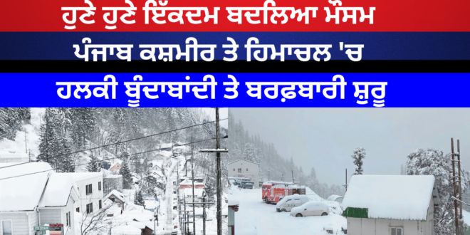 ਹਿਮਾਚਲ ਦੇ ਰੋਹਤਾਂਗ ਦੇ ਅਟਲ ਸੁਰੰਗ ਦੇ ਉੱਤਰੀ ਅਤੇ ਦੱਖਣੀ ਪੋਰਟਲ ‘ਤੇ ਮੰਗਲਵਾਰ ਦੁਪਹਿਰ ਨੂੰ ਤਾਜ਼ਾ ਬਰਫਬਾਰੀ ਹੋਈ। ਦੇਰ ਸ਼ਾਮ ਪਾਲਮਪੁਰ ਅਤੇ ਧਰਮਸ਼ਾਲਾ ਦੇ ਆਸ-ਪਾਸ ਹਲਕੀ ਬਾਰਿਸ਼ ਹੋਈ। ਲੰਬੇ ਇੰਤਜ਼ਾਰ ਤੋਂ ਬਾਅਦ ਚੰਬਾ ਜ਼ਿਲ੍ਹੇ ਦੇ ਉੱਚੇ ਪਹਾੜ ਬਰਫ਼ ਦੀ ਚਿੱਟੀ ਚਾਦਰ ਨਾਲ ਢੱਕੇ ਹੋਏ ਸਨ। ਪੰਗੀ ਅਤੇ ਭਰਮੌਰ ਦੇ ਉੱਚੇ ਇਲਾਕਿਆਂ ਵਿੱਚ ਤਾਜ਼ਾ ਬਰਫ਼ਬਾਰੀ ਹੋਈ।