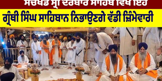 ਸ੍ਰੀ ਅਕਾਲ ਤਖਤ ਸਾਹਿਬ ‘ਤੇ ਸਮਾਗਮ ਤੋਂ ਬਾਅਦ ਸੱਚਖੰਡ ਸ੍ਰੀ ਹਰਿਮੰਦਰ ਸਾਹਿਬ ਵਿਖੇ ਦੋ ਨਵੇਂ ਗ੍ਰੰਥੀ ਸਿੰਘਾਂ ਦੀ ਨਿਯੁਕਤੀ ਹੋਈ ਹੈ। ਗਿਆਨੀ ਕੇਵਲ ਸਿੰਘ ਅਤੇ ਗਿਆਨੀ ਪਰਵਿੰਦਰਪਾਲ ਸਿੰਘ ਨੇ ਗ੍ਰੰਥੀ ਵਜੋਂ ਅਹੁਦਾ ਸੰਭਾਲ ਲਿਆ ਹੈ। ਪੰਜ ਸਿੰਘ ਸਾਹਿਬਾਨਾਂ ਨੇ ਦੋਹਾਂ ਗ੍ਰੰਥੀ ਸਿੰਘਾਂ ਨੂੰ ਦਸਤਾਰਾਂ ਭੇਂਟ ਕੀਤੀਆਂ।
