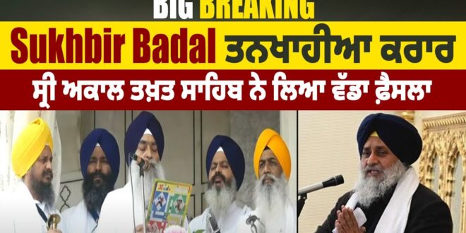 ਦੱਸਦਈਏ ਕਿ ਪੰਜ ਤਖਤ ਸਾਹਿਬਾਨਾਂ ਦੇ ਜਥੇਦਾਰ ਸਾਹਿਬਾਨ ਦੀ ਅੱਜ ਹੋਈ ਇਕੱਤਰਤਾ ਦੌਰਾਨ ਸ਼੍ਰੋਮਣੀ ਅਕਾਲੀ ਦਲ ਦੇ ਪ੍ਰਧਾਨ ਸੁਖਬੀਰ ਸਿੰਘ ਬਾਦਲ ਨੂੰ ਲੈ ਕੇ ਵੱਡਾ ਫੈਸਲਾ ਸੁਣਾਇਆ ਗਿਆ। ਪਿਛਲੇ ਦਿਨੀ ਅਕਾਲੀ ਦਲ ਤੋਂ ਬਾਗੀ ਹੋਏ ਆਗੂਆਂ ਵੱਲੋਂ ਸ੍ਰੀ ਅਕਾਲ ਤਖਤ ਸਾਹਿਬ ਤੇ ਪੇਸ਼ ਹੋ ਕੇ ਇਸ ਸਬੰਧੀ ਕਾਰਵਾਈ ਦੀ ਮੰਗ ਕੀਤੀ ਗਈ ਸੀ।