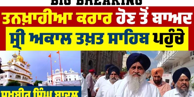 ਕੱਲ੍ਹ ਜਥੇਦਾਰ ਸ੍ਰੀ ਅਕਾਲ ਤਖ਼ਤ ਸਾਹਿਬ ਵੱਲੋਂ ਕਿਹਾ ਗਿਆ ਸੀ ਕਿ “ਪੰਜ ਸਿੰਘ ਸਾਹਿਬਾਨ ਦੀ ਇਕੱਤਰਤਾ ਸਕੱਤਰ ਸ਼੍ਰੀ ਅਕਾਲ ਤਖਤ ਸਾਹਿਬ ਦੇ ਵਿਖੇ ਹੋਈ, ਜਿਸ ਵਿੱਚ ਪੰਜ ਸਿੰਘ ਸਾਹਿਬਾਨ ਦੀ ਸਰਬ ਸੰਮਤੀ ਨਾਲ ਫੈਸਲਾ ਹੋਇਆ ਕਿ ਸੁਖਬੀਰ ਸਿੰਘ ਬਾਦਲ ਨੇ ਬਤੌਰ ਡਿਪਟੀ ਮੁੱਖ ਮੰਤਰੀ ਪੰਜਾਬ ਸਰਕਾਰ ਅਤੇ ਪ੍ਰਧਾਨ ਸ਼੍ਰੋਮਣੀ ਅਕਾਲੀ ਦਲ ਹੁੰਦਿਆਂ ਹੋਇਆ ਕੁਝ ਅਜਿਹੇ ਫੈਸਲੇ ਲਏ ਜਿਸ ਨਾਲ ਪੰਥਕ ਸਰੂਪ ਦੇ ਅਕਸ਼ ਨੂੰ ਬਹੁਤ ਭਾਰੀ ਢਾਹ ਲੱਗੀ।