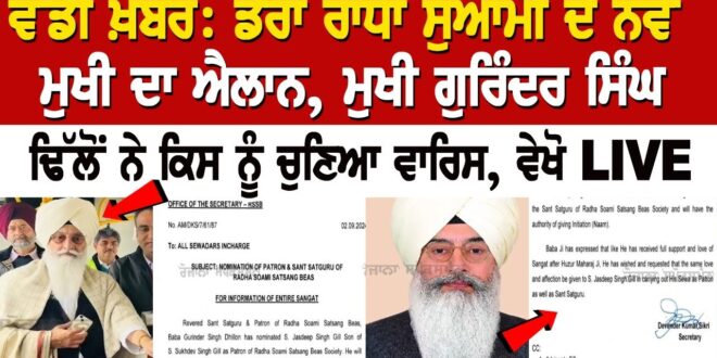 ਸਾਰੇ ਸੇਵਾਦਾਰਾਂ ਅਤੇ ਇੰਚਾਰਜਾਂ ਨੂੰ ਪੱਤਰ ਭੇਜਿਆ ਗਿਆ——–ਇਸ ਸਬੰਧੀ ਸਮੂਹ ਸੇਵਾ ਇੰਚਾਰਜਾਂ ਨੂੰ ਭੇਜੇ ਪੱਤਰ ਵਿੱਚ ਕਿਹਾ ਗਿਆ ਹੈ ਕਿ ਸਤਿਕਾਰਯੋਗ ਸੰਤ ਸਤਿਗੁਰੂ ਅਤੇ ਰਾਧਾ ਸੁਆਮੀ ਸਤਿਸੰਗ ਬਿਆਸ ਦੇ ਸਰਪ੍ਰਸਤ ਬਾਬਾ ਗੁਰਿੰਦਰ ਸਿੰਘ ਢਿੱਲੋਂ ਨੇ ਸੁਖਦੇਵ ਸਿੰਘ ਗਿੱਲ ਦੇ ਸਪੁੱਤਰ ਜਸਦੀਪ ਸਿੰਘ ਗਿੱਲ ਨੂੰ ਸਰਪ੍ਰਸਤ ਨਾਮਜ਼ਦ ਕੀਤਾ ਹੈ। ਰਾਧਾ ਸੁਆਮੀ ਸਤਿਸੰਗ ਬਿਆਸ ਸੋਸਾਇਟੀ। ਉਹ 02 ਸਤੰਬਰ, 2024 ਤੋਂ ਤੁਰੰਤ ਪ੍ਰਭਾਵ ਨਾਲ ਸਰਪ੍ਰਸਤ ਵਜੋਂ ਉਨ੍ਹਾਂ ਦੀ ਥਾਂ ਲੈਣਗੇ।