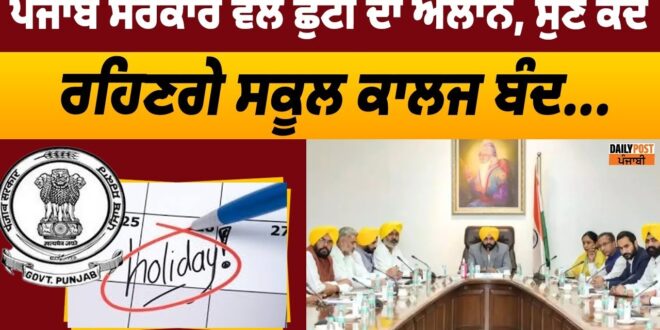 ਪੰਜਾਬ ਸਰਕਾਰ ਨੇ “ਪਹਿਲਾ ਪ੍ਰਕਾਸ਼ ਗੁਰਪੁਰਬ ਸ੍ਰੀ ਗੁਰੂ ਗ੍ਰੰਥ ਸਾਹਿਬ ਜੀ” ਦੇ ਸ਼ੁਭ ਦਿਹਾੜੇ ’ਤੇ 4 ਸਤੰਬਰ, 2024 ਨੂੰ ਅੰਮ੍ਰਿਤਸਰ ਜ਼ਿਲ੍ਹੇ ਵਿਚ ਸਥਾਨਕ ਛੁੱਟੀ ਦਾ ਐਲਾਨ ਕੀਤਾ ਹੈ। ਇਸ ਸਬੰਧੀ ਜਾਣਕਾਰੀ ਦਿੰਦਿਆਂ ਸੂਬਾ ਸਰਕਾਰ ਦੇ ਅਧਿਕਾਰਤ ਬੁਲਾਰੇ ਨੇ ਦੱਸਿਆ ਕਿ ਅੰਮ੍ਰਿਤਸਰ ਜ਼ਿਲ੍ਹੇ ਵਿਚ ਪੰਜਾਬ ਸਰਕਾਰ ਦੇ ਸਾਰੇ ਦਫ਼ਤਰ, ਬੋਰਡ/ਕਾਰਪੋਰੇਸ਼ਨਾਂ ਅਤੇ ਸਰਕਾਰੀ ਵਿਦਿਅਕ ਅਦਾਰੇ ਬੁੱਧਵਾਰ (4 ਸਤੰਬਰ, 2024) ਨੂੰ ਬੰਦ ਰਹਿਣਗੇ। ਇਸ ਸਬੰਧੀ ਪ੍ਰਸੋਨਲ ਵਿਭਾਗ ਵੱਲੋਂ ਨੋਟੀਫਿਕੇਸ਼ਨ ਜਾਰੀ ਕਰ ਦਿੱਤਾ ਗਿਆ ਹੈ।