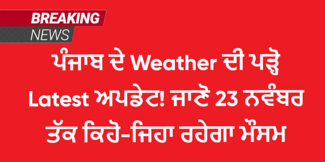 ਪੰਜਾਬ ਦੇ ਮੌਸਮ ਨੂੰ ਲੈ ਕੇ ਨਵੀਂ ਅਪਡੇਟ ਸਾਹਮਣੇ ਆਈ ਹੈ। ਮੌਸਮ ਵਿਭਾਗ ਵੱਲੋਂ ਪੰਜਾਬ ਦੇ ਮੌਸਮ ਸਬੰਧੀ ਅੱਜ ਤੋਂ ਲੈ ਕੇ 23 ਨਵੰਬਰ ਤੱਕ ਦੀ ਭਵਿੱਖਬਾਣੀ ਕੀਤੀ ਗਈ ਹੈ। ਤਾਜ਼ਾ ਜਾਣਕਾਰੀ ਮੁਤਾਬਕ ਇਸ ਹਫ਼ਤੇ ਕੋਈ ਮੀਂਹ ਨਹੀਂ ਪਵੇਗਾ। ਮੌਸਮ ਵਿਭਾਗ ਨੇ ਸਪੱਸ਼ਟ ਤੌਰ ‘ਤੇ ਸੰਕੇਤ ਦਿੱਤਾ ਹੈ ਕਿ ਸੂਬੇ ਵਿੱਚ ਕੋਈ ਮੀਂਹ ਪੈਣ ਦੀ ਸੰਭਾਵਨਾ ਨਹੀਂ ਹੈ।