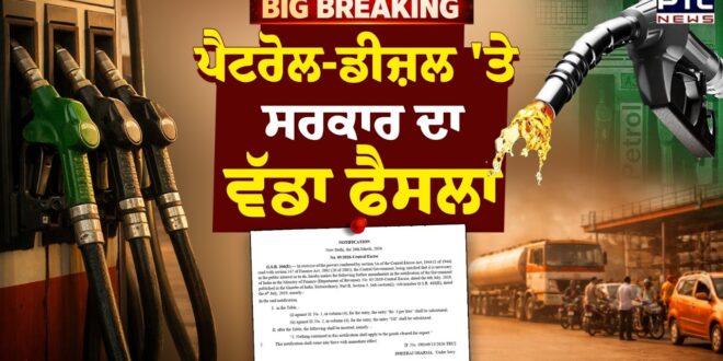 ਕੇਂਦਰ ਸਰਕਾਰ ਨੇ ਪੈਟਰੋਲ ‘ਤੇ ਐਕਸਾਈਜ਼ ਡਿਊਟੀ 13 ਰੁਪਏ ਪ੍ਰਤੀ ਲੀਟਰ ਤੋਂ ਘਟਾ ਕੇ 3 ਰੁਪਏ ਪ੍ਰਤੀ ਲੀਟਰ ਅਤੇ ਡੀਜ਼ਲ ‘ਤੇ ਐਕਸਾਈਜ਼ ਡਿਊਟੀ 10 ਰੁਪਏ ਪ੍ਰਤੀ ਲੀਟਰ ਤੋਂ ਘਟਾ ਕੇ ਜ਼ੀਰੋ ਕਰ ਦਿੱਤੀ ਹੈ। ਈਰਾਨ ਅਤੇ ਇਜ਼ਰਾਈਲ-ਅਮਰੀਕਾ ਵਿਚਕਾਰ ਚੱਲ ਰਹੀ ਜੰਗ ਕਾਰਨ ਪੈਦਾ ਹੋਏ ਊਰਜਾ ਸੰਕਟ ਦੇ ਮੱਦੇਨਜ਼ਰ ਮੋਦੀ ਸਰਕਾਰ ਦਾ ਇਹ ਇੱਕ ਵੱਡਾ ਕਦਮ ਹੈ।