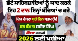 Read More »ਛੋਟੇ ਸਾਹਿਬਜ਼ਾਦਿਆਂ ਨੂੰ ਯਾਦ ਕਰਕੇ ਇਹ 2 ਦਾਨ